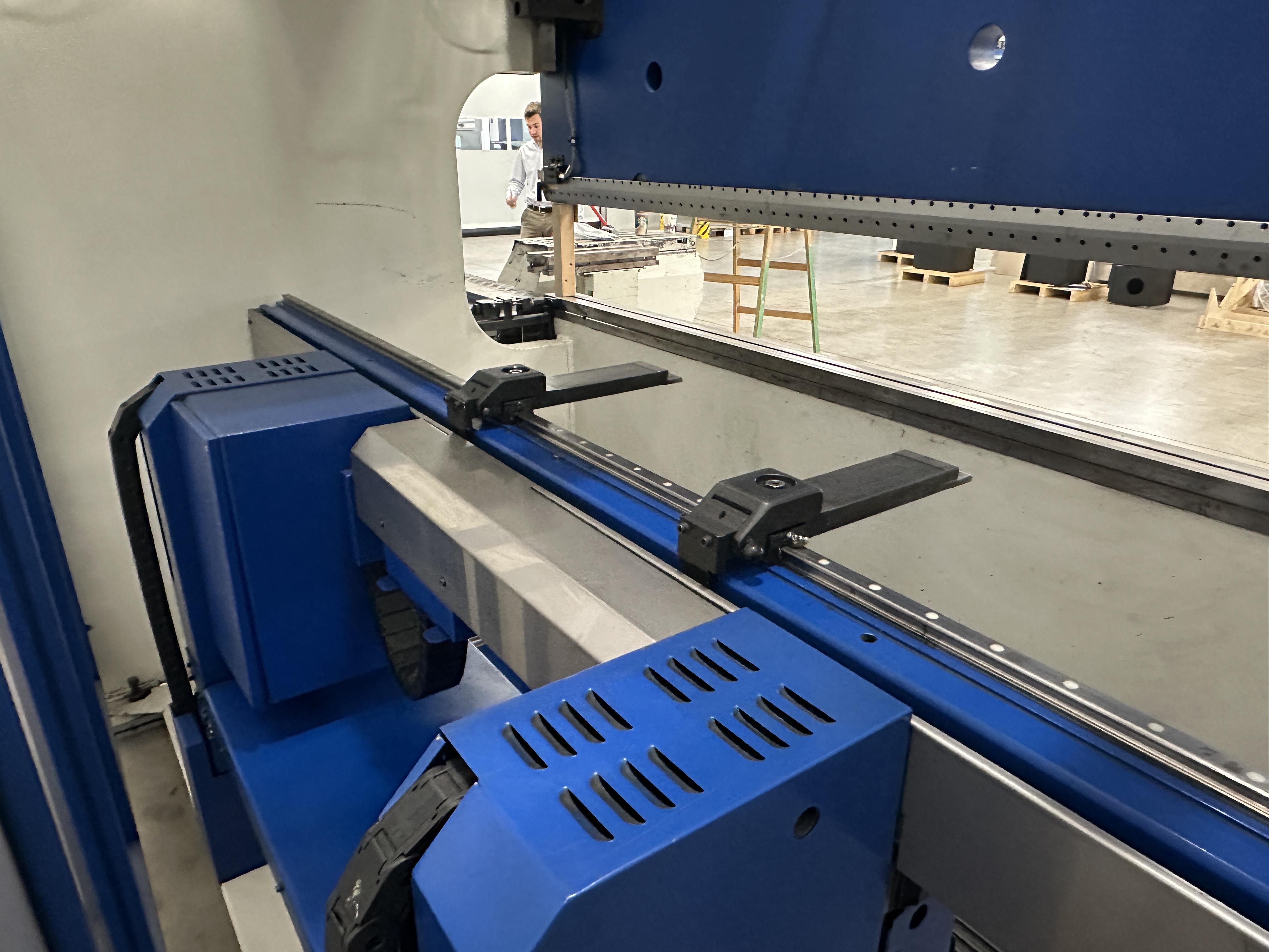 ⦁ CNC-Hinteranschlag mit Zahnstangen-Ritzelantrieb, für X- und R-Achse, Gefahrfreies Verschieben der Anschlagfinger von vorn